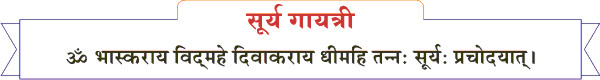 | ॐ भास्कराय विद्महे दिवाकराय धीमहि तन्नः सूर्यः प्रचोदयात्। |
