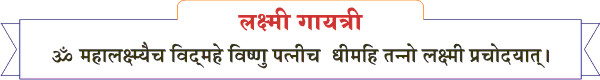 | ॐ महालक्ष्म्यैच विद्महे विष्णु पत्नीच धीमहि तन्नो लक्ष्मी प्रचोदयात्। |