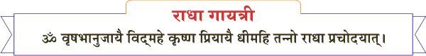 | ॐ वृषभानुजायै विद्महे वृत्र्ष्ण प्रियायै धीमहि तन्नो राधा प्रचोदयात्। |